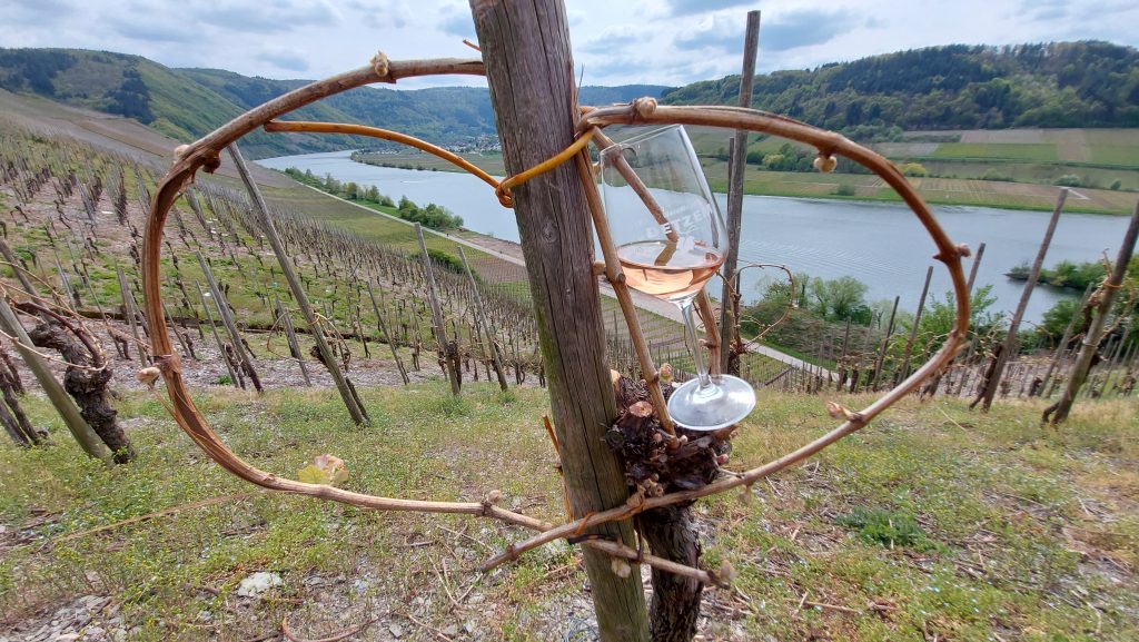 In den Steillagen geht es 130 Meter hoch und wir werden dort mit herrlichen Aussichten auf das Moseltal und das weite Tal zwischen Detzem und Leiwen belohnt. Wir starten im Ortszentrum und gelangen über die Schleuse in die Weinlage Maximiner Klosterlay. Dort werden wir bei einem Aussichtspunkt zwei typische Weine der Region verkosten und verstehen wie die Geologie und Landschaftsform hier diese Weine prägen. Danach wandern wir weiter hoch und werden beim Grillplatz wieder zwei Weine verkosten und verstehen, wie der Winzer durch die Bearbeitung des Weinbergs und die Arbeiten im Keller die Weine beeinflussen kann. Ein moseltypischer Imbiss rundet den Aufenthalt dort ab.